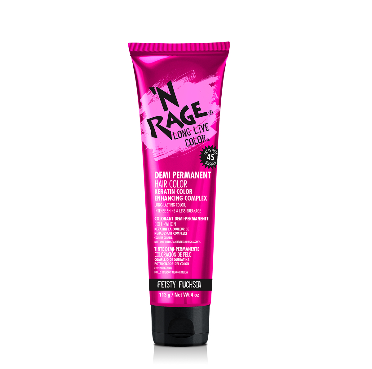 'N RAGE Demi-Permanent Hair Color offers vibrant and long-lasting hair color that's ideal for all hair types. Available in 4 intense colors: Cobalt Blue, Twisted Teal, Purple Plum, and Feisty Fuchsia. Choose what suits your personality!
